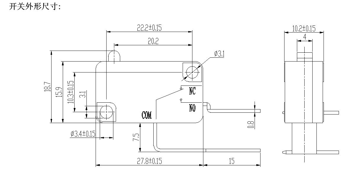 HK-14-serien erbjuder mycket flexibla anpassningsalternativ för att möta olika applikationskrav. Manöverkraften kan anpassas (mindre än 5,0 N i spakfritt tillstånd, standard 30±15 gf), med ett manöverslagsområde på 0,6–1,5 mm, lämpligt för olika utlösningskrafter och förskjutningsscenarier. Spakstilar är anpassningsbara, inklusive raka, böjda och rullspakar, som kan matcha olika mekaniska transmissionsstrukturer. Kontaktformulär täcker hela utbudet av SPDT (1NO 1NC), NO och NC.